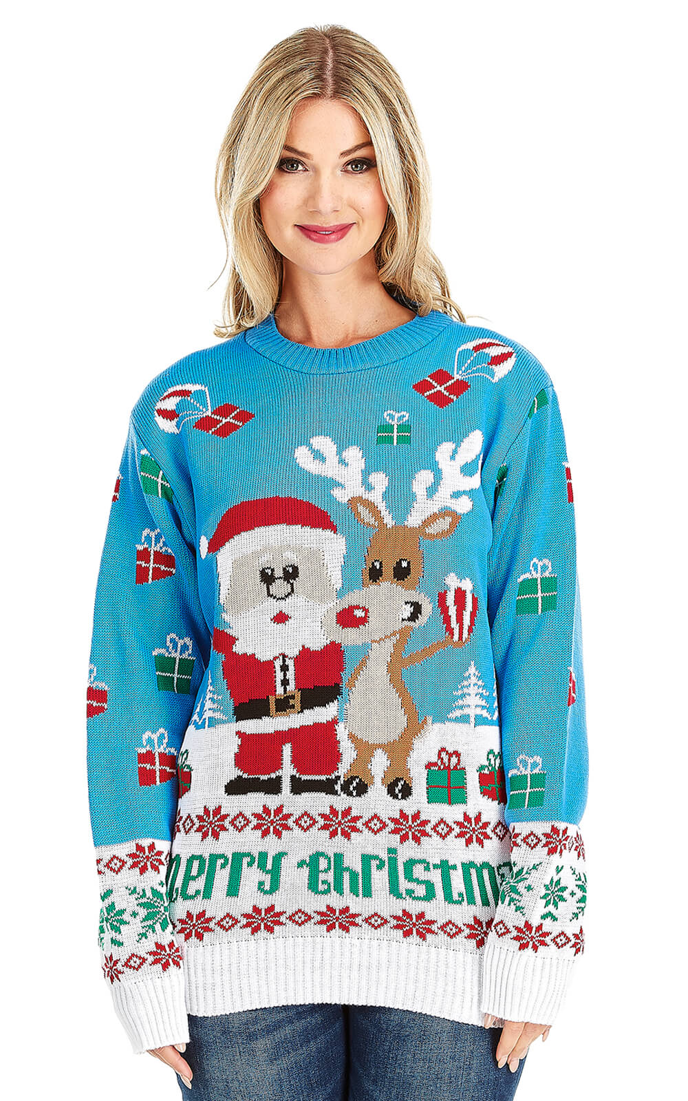 Vier kerst vol gezelligheid en stijl met de Happy Christmas-kersttrui! Deze vrolijke damestrui combineert een feestelijke print met een comfortabele fit — perfect voor kerstborrels, feestdagen met familie of een gezellige avond op de bank. Gemaakt van 100% acryl en beschikbaar in maten XS tot XXXL, hij zit heerlijk zacht, houdt je warm en kriebelt niet. E...